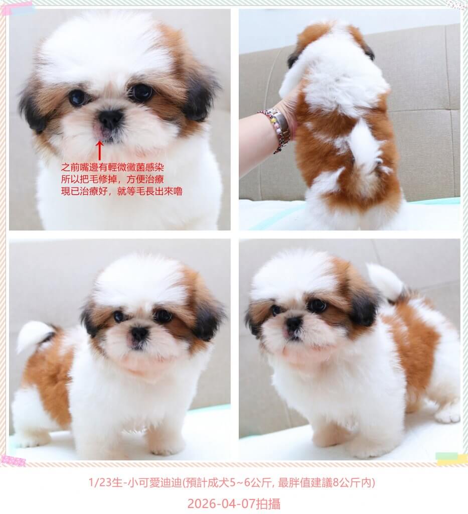 乖乖狗寵物家 2026-04-07 尚無留言 NT$33,000 (拒議價 ⛔️ ,謝謝 🙏) 2026/04/07拍攝 Ⓞ 生日 : 2026/01/23生 Ⓞ 晶片號碼 : 9xxxxxxxx22404 Ⓞ 健康 : 於3/24施打第一劑八合一 Ⓞ 可帶回日 : 即日起 Ⓞ 付款方式 : 現金,轉帳,Line ipass money , 刷卡(價另詢) 小提醒 : (點選照片↓ , 往右滑動,可以放大及觀賞下一張照片唷♥) 2026/04/07拍攝 Ⓞ 毛孩的照片皆為本尊拍攝,不造假,平均每10天會更新重拍一次 Ⓞ 打預防針前會先完成體內驅蟲(蛔蟲,球蟲,梨形鞭毛蟲) Ⓞ 施打第一劑疫苗後,均附醫院接種証明手冊,及合法晶片登載與免費轉讓過戶 Ⓞ 均簽訂買賣契約保障 Ⓞ 附飼養/教育說明單 Ⓞ 完整的售後服務, 飼養過程中有任何問題都歡迎私訊詢問 Ⓞ 就算第一次飼養也能很快上手 ← 【西施犬-♀】01/23生-小甜心美眉(代) 各式混血兒公告: → 發佈留言 取消回覆很抱歉,必須登入網站才能發佈留言。登入留言方式