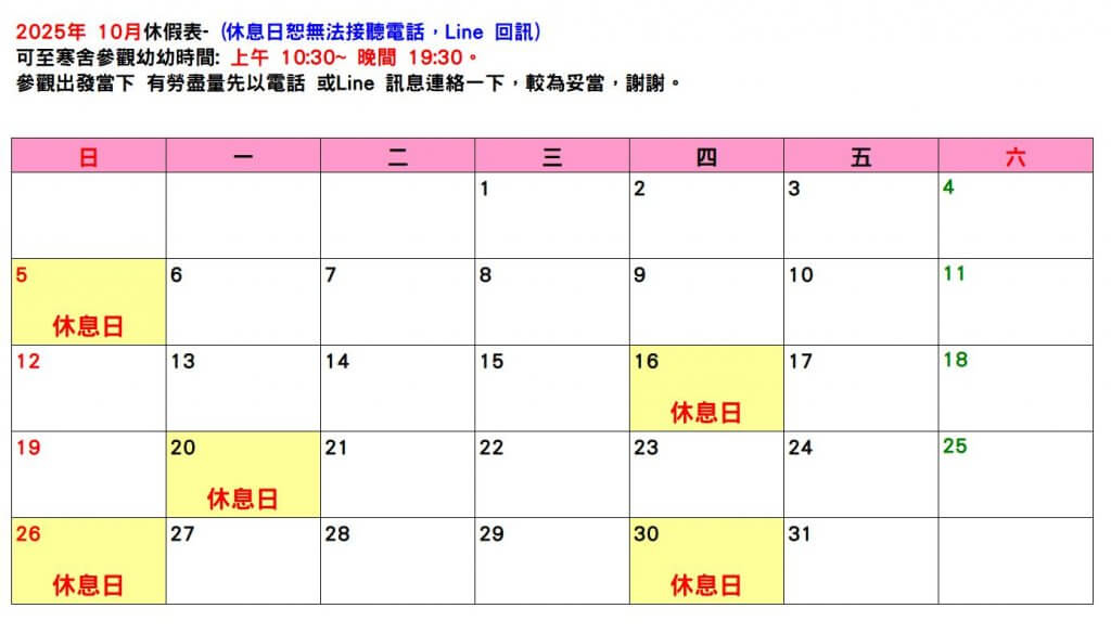 【2025/10假表】 (點選一下月曆,可以放大看唷)