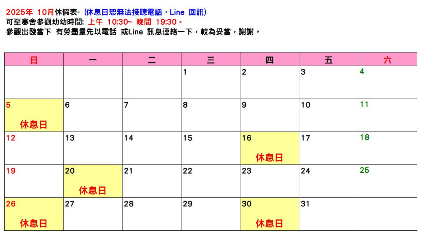 【2025/10假表】 (點選一下月曆,可以放大看唷)